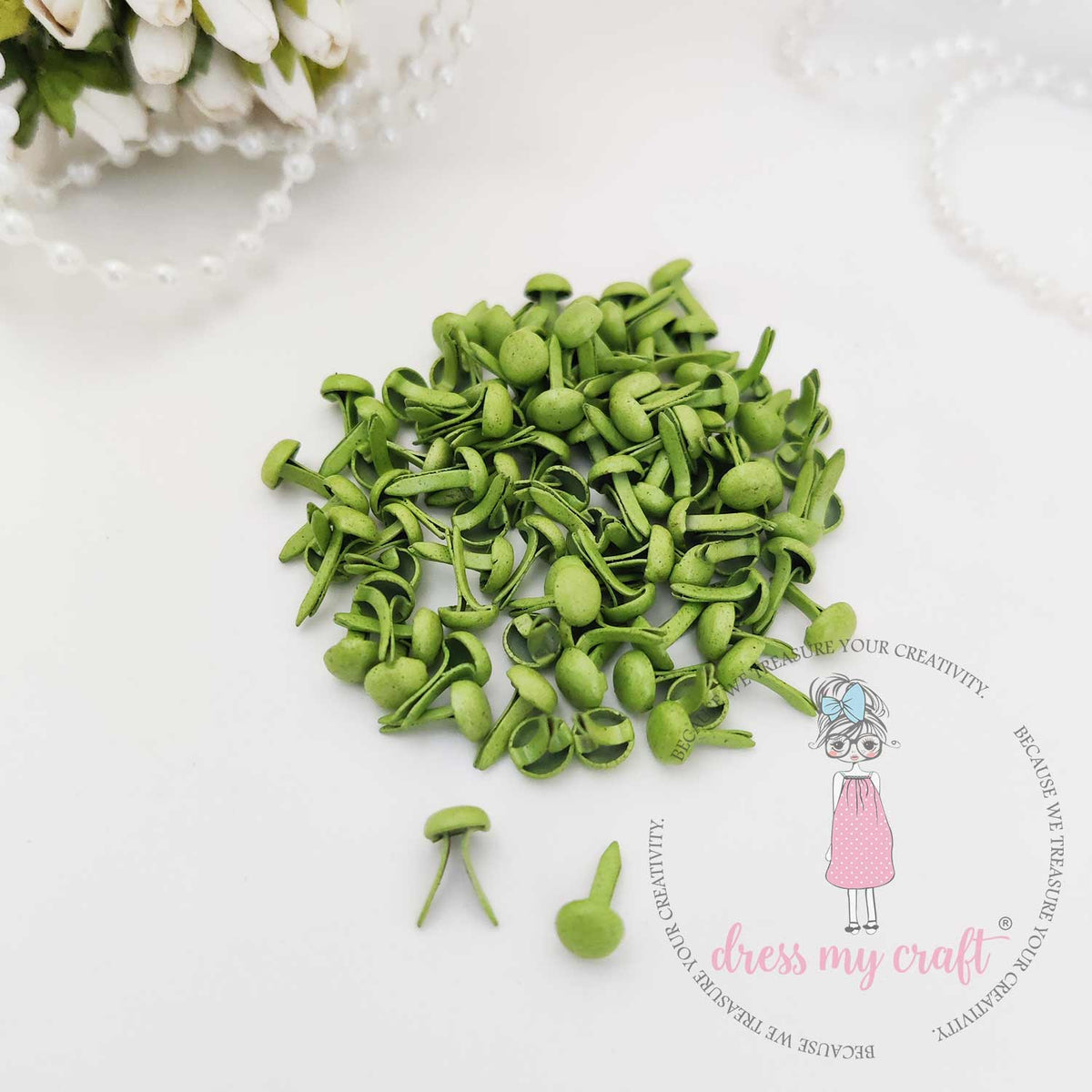 This Pack contains 100 Pcs of Colored Mini Pastel Brads in the size of 10MM X 5MM .