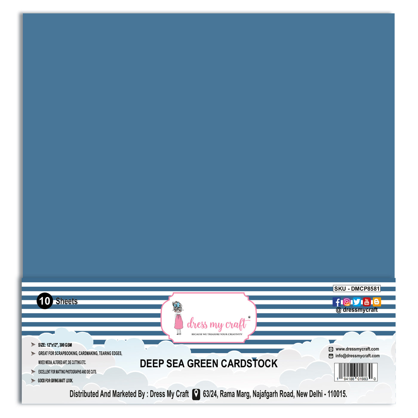 Deep Sea Green Cardstock - 12" x 12" (Pack of 10 Sheets)