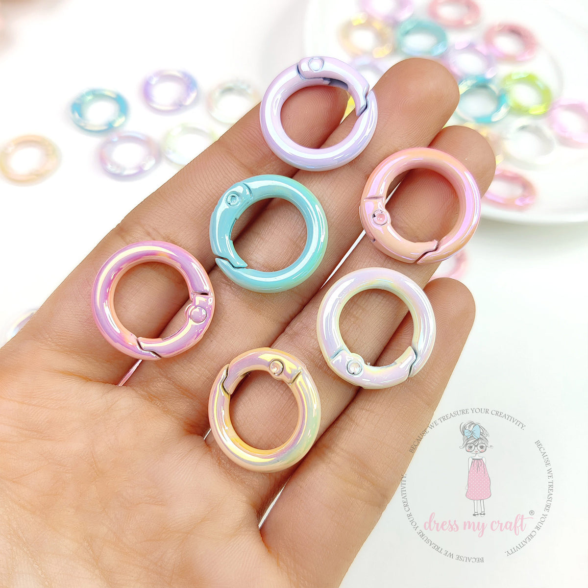 I’ve been using these rings for jewelry making, and they are fantastic! The colors are bright, and they are really easy to open and close.