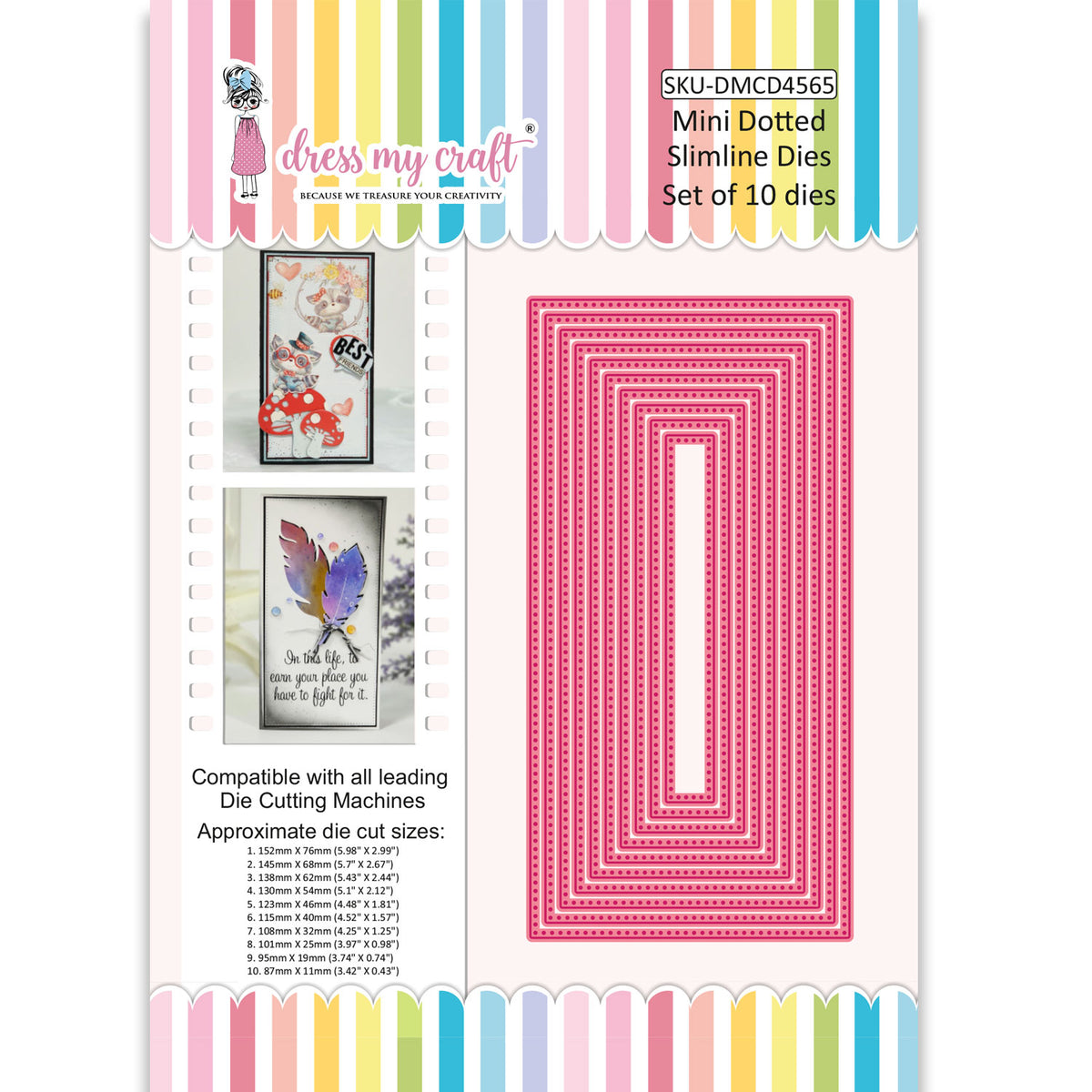 This die set contains Mini Dotted Slimline Die to make shaker tags, cards, scrapbooks, embellishments, window cards, frames, etc.
